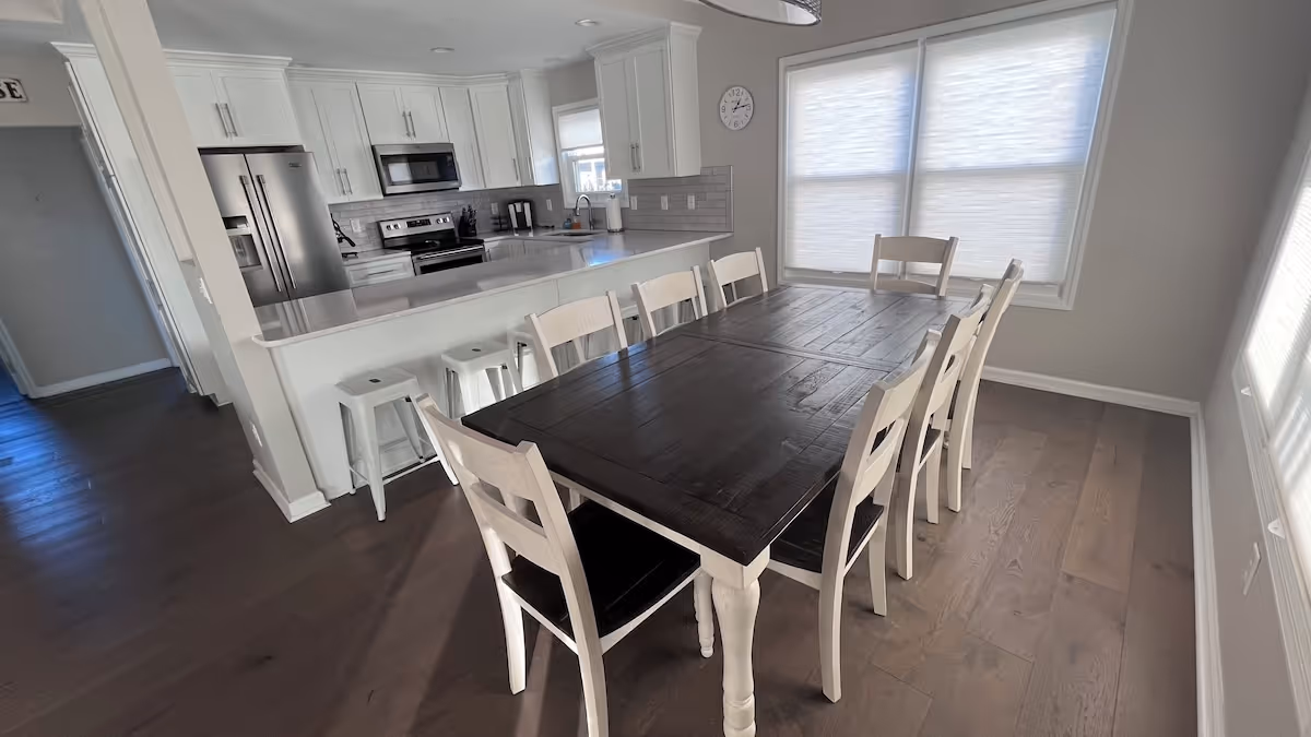 - Oversized rocking chairs and Adirondack chairs on the front and back porches plus two (2) full sized polywood dining tables with chairs to accommodate outdoor dining (seating for 12).